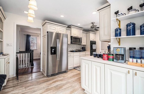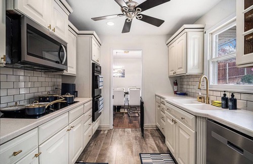 Experience the epitome of modern living in this stunning 4-BR 3-BA home. Boasting brand-new, stylish furniture and abundant space, this residence offers a truly luxurious retreat. Nestled in a tranquil neighborhood, you'll enjoy the utmost peace while being conveniently close to all the city offers. Indulge in a world of comfort with an array of amenities. Whether you're traveling for business or leisure, this home provides the perfect backdrop for an unforgettable experience. Welcome to Your Home Away from Home Step into a beautifully appointed living area, perfect for relaxing and entertaining. The floor plan seamlessly connects the living room, dining area, office space, and gourmet kitchen, creating a welcoming atmosphere for gatherings. Bedrooms- Bedroom 1: A luxurious king-size bed, flat-screen TV, and an en-suite full bathroom and two spacious walk-in closet. Bedroom 2: A cozy queen-size bed and flat-screen TV. Bedroom 3: A cozy queen-size bed and flat-screen TV. Bedroom 4: A cozy queen-size bed and flat-screen TV. Living Areas: Kitchen- Fully equipped for your culinary needs. There are two dining tables. Cooking Utensils: Pots, pans, bakeware, knives, cutting boards, and various cooking tools. Dining Equipment: Plates, bowls, cups, glasses, silverware, and serving dishes. Small Appliances: Coffee maker (Keurig and traditional pot), toaster, and microwave. Basic Pantry Items: Salt, pepper, sugar, oil, vinegar, and other common cooking staples. Note: While we provide the basics, you may want to supplement with your own favorite spices, condiments, or specialty ingredients. Living Area- There is a spacious living room and family room (in the basement) with comfortable seating, large-screen TVs, and two cozy fireplaces for relaxation. There are three futons in the family room and a bunk bed that will sleep 5 guests. Play area and games- There are three Arcade games and several cards and board games. Gym- There are stationary bikes and elliptical machines. Laundry Room- In-unit laundry facilities with a washer and dryer are available for you to have. Outdoor Features- Garage: Ample parking for two vehicles. Patio: Outdoor seating perfect for enjoying the fresh air. Others- Wi-Fi: High-speed Wi-Fi internet access throughout the home. TV Cable: YouTub TV is included for a total five TV's. Pool is not available.