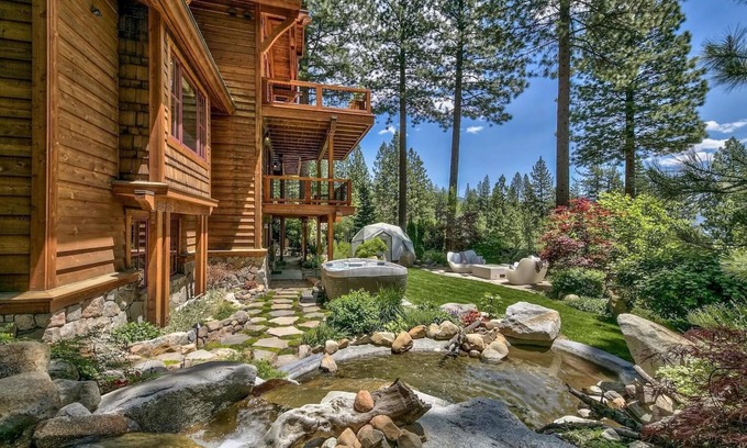 While the more than $1 million in upgrades provides the optimal indoor vacation experience, it is the Sierra Nevada and Lake Tahoe most guests have come to see. This one-of-a-kind property doesn't disappoint. Step outside into the beautifully landscaped, fenced-in yard to find your own man-made, wondering creek that flows down the side of the house. Terminating at a small, cascading waterfall and pond in the backyard, nature is right at your fingertips and toes at this luxury Tahoe retreat. Consummate your ultimate vacation by enjoying the morning solace or incredible starry night skies relaxing in the family-sized hot tub or by the open, gas-powered fire pit.
