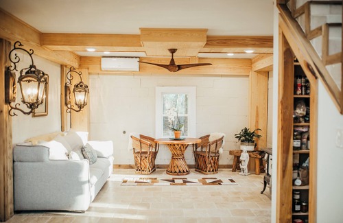 Set in the piney woods of East Texas, but still within a few miles of the freeway, you will feel both far outside the city while also still being conveniently close to town, or within just a few minutes of I-30 if you are passing through. You can enjoy the feeling of being "off-grid" while still having access to all the modern essentials.