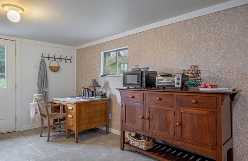 Thank you for choosing Rathdrum Mountain Guest House. It is our goal to offer our guests a welcoming and relaxing retreat to unwind, explore, and enjoy the nature trails on our private land at the base of Rathdrum Mountain. This cozy retreat is designed for two people but accommodates four. We hope you enjoy the comfortable atmosphere, luxury amenities, antiques, and the beauty of nature that surrounds us. Relax during your stay and enjoy the Finnleo outdoor sauna, spa-quality bath products, cozy robes and slippers. We offer a fully stocked kitchen with all-new appliances and high-end cookware. Sleep beautifully in our well-appointed bedrooms. The master bedroom features a king size Saatva luxury-firm mattress. Queen room features a softer Oceano Luxury mattress from Brentwood Homes. Both bedrooms feature European white goose-down feather pillows and are tripled sheeted with 100% cotton linens. Well-mannered and positively potty-trained dogs are welcome. A luxury dog house and outdoor kennel is available complete with dog toys and various sized dog beds. Grill and dine outdoors next to the seasonal creek or enjoy several local restaurants nearby. The house is equipped with a smart-TV, Wi-Fi, books, games, records and more.