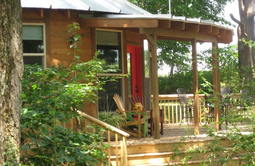Our yurt is located on twenty acres in Madison County with a one acre stocked fishing pond. Construction of the yurt was completed in August of 2015. A raised 46' x 64' deck completely surrounds the yurt so you can enjoy the outdoors as well as the indoors.