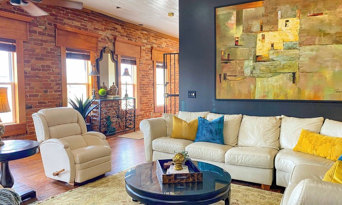 Main Street Loft is the most unique lodging experience in the beautiful city of Enterprise, Alabama. Centrally located in the vibrant downtown, you will enjoy shopping, dining, & entertainment. Our upstairs apartment is located in one of the city's prized historic buildings. Our numerous modern amenities perfectly compliment the loft's beautifully preserved architectural details like original fireplaces, exposed brick walls, wrought iron, and original tongue-and-groove ceilings and floors.