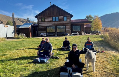 Rare historic cabin with 120 feet of grass yard on the banks of the Salmon river. Beautiful Sawtooth mountain views. Take it easy or let this be your launching pad for your Sawtooth adventures. Embark on a day float to Mormon bend, head 1 mile to Stanley for music, dinner or shopping, drive 10 minutes to iconic Redfish Lake or relax in our wood fired hot tub riverside as you watch bald eagles and osprey fish. The newly remodeled downstairs kitchen and great room blend modern comfort with rustic charm, offering a warm, open space to cook, gather, and relax after a day a full day.