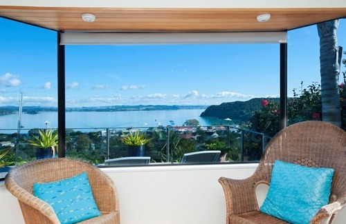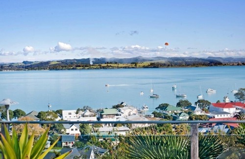 A View holiday house is situated in the heart of Romantic Russell, on the hill in the dress circle, overlooking the village and across the Channel to Paihia. You can sit at home and enjoy it all from your vantage point on the hill, or walk down the zig-zag track into the village below, 3 minutes away for cafes, restaurants, galleries and shopping.