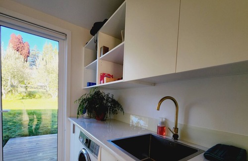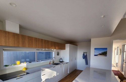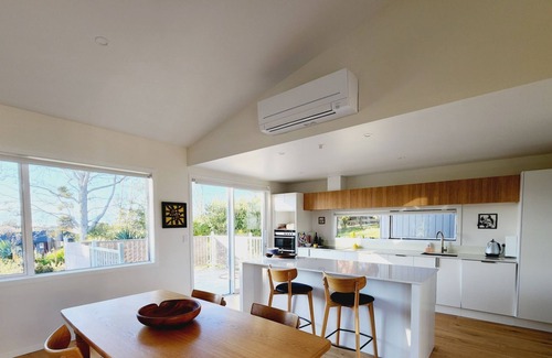 A warm, sunny and contemporary home, ideal for a family or friends here to enjoy the Tasman region. The open plan kitchen, dining and living leads to the outdoor entertainment area and large garden. The kitchen is very well equipped with everything you are likely to need