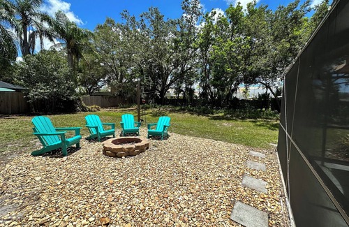 Beatifully updated pool home complete with two master suites that both have access to the pool. A fun double bunk room for the kiddos. Each bedroom has a ceiling fan with a remote. Plenty of room for families and large groups. Huge backyard, quiet neighborhood and private pool, two fire pits, corn hole boards and bags. The indoor shuffleboard table provides endless entertainment. The closet is full of puzzles and board games. Giant full size kitchen, completely stocked with everything you need. Dining room with seating for six and seating for four more at the kitchen island.Two car garage and plenty of driveway space to park multiple vehicles. We are pet friendly and have a fully fenced in back yard. There is a temperature controlled grill on the pool deck for the grillmaster in your group.There are Roku TVs in every room except for the bunk room. We are 6 miles from world renowned beaches, close to rowing facilities, big cat habitat, and museums. Many local breweries nearby. We provide beach chairs, an umbrella, a beach bag, and a soft cooler so you’re all set to to enjoy our beautiful beaches. There is a Target, a Publix, a Winn Dixie, and many restaurants 5 minutes away.