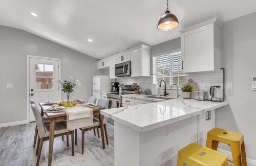 Welcome to our hidden gem house on Almond Ave in beautiful Monrovia city! Newly renovated this year, brand new bathroom, and new appliances. Unwind in the comfortable living area, enjoy meals in the well-equipped kitchen and dining area, and rest peacefully in the well thought out furnished bedrooms. Soak up the California sunshine. Within walking distance of grocery store and restaurants. Bedrooms have independent thermostats for maximum comfort.
