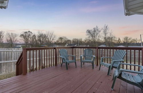 Your Ozark getaway is sure to be filled with time spent outside, even when staying this close to downtown. Take your morning coffee onto the home's large deck overlooking the spacious fenced-in yard. Enjoy the fresh air and in the evenings, take a seat to enjoy the changing colors of a Branson sunset. Inside, cozy interiors will make you feel right at home from the well-furnished living area to the fully equipped kitchen with stainless steel appliances, coffee maker, blender, and toaster for convenient cooking at home. Gather at the dining table to share a meal and reflect on your favorite memories of the day.