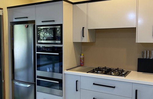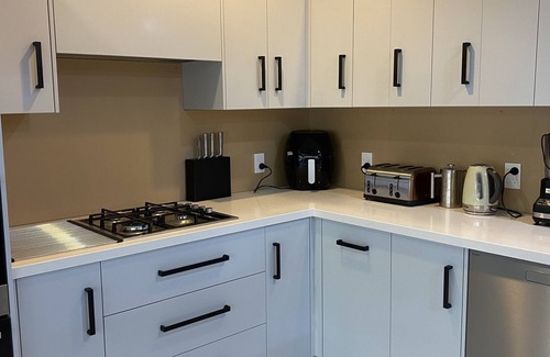 As you settle into this 5-bedroom, 4-bathroom rental, you'll find a living room, a dining area, premium bedding, and a BBQ grill. The kitchen is equipped with an oven, a stovetop, and a full-sized refrigerator/freezer, as well as a coffee maker, an electric kettle, and a microwave. And because there's access to laundry facilities, you can go a bit lighter on your packing.