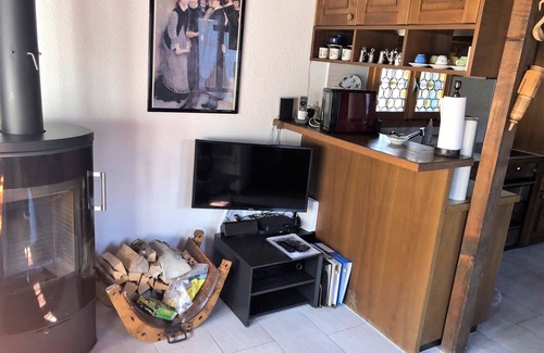 Living room with comfortable lounge, cable TV (HD, flat screen), radio, DVD, stove, electric floor heating with thermostats in all rooms, dining area with open-plan kitchen (equipped with oven, cooking stove with 4 hotplates, refrigerator with freezer, coffee machine with capsules (Delizio), fondue-set, raclette-stove. Small bathroom with shower/toilet. Washing machine. Bedroom with double bed (140x200cm) and built-in cupboard. WiFi.