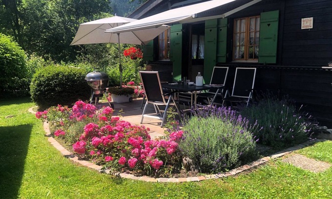 42 m2. More information by the provider: Small, comfortable chalet (42sqm, built in 1985) with 2 rooms, in the chaletpark Ebnit, situated on the hiking trail between Gstaad and Saanen. Terrace with garden furnitures, beautiful view of the Eggli and Hornberg. Perfect starting point for hiking in summer and winter, close to the cross country ski runs. Approximately 15 minutes walking distance to the chairlift Rübeldorf-Eggli Saanen. -> Important note: The chalet is not suitable for children under 5 years!