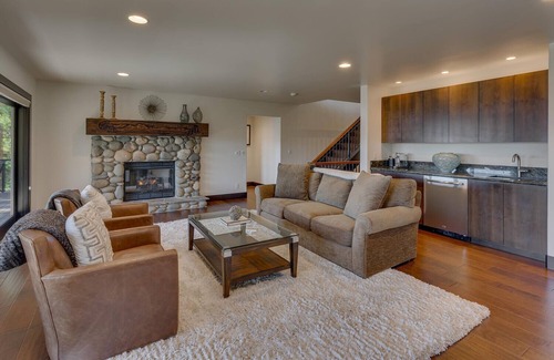 Other convenient amenities include an oversized gourmet kitchen, a three-car garage, and air conditioning. Enjoy your favorite media with a Sonos sound system and six flat screen televisions with TiVo. This home comfortably accommodates up to 10 guests, offering more than enough room for families and large groups. The stunning king bedroom suites include fireplaces and lavish, spa-quality bathrooms with steam showers. Three bedrooms have king beds, and one has two sets of twin over full bunk beds. Ski resort access is only minutes away. For an unrivaled luxury experience on your Tahoe getaway, look no further than this beautiful mountain home.