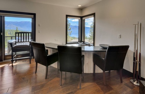 If it weren't for the gorgeous Lake Tahoe weather and the fabulous amenities offered by Incline Village, there would be no reason to ever leave Above and Beyond. All your entertainment and relaxation needs are right at your fingertips. Stylish, contemporary décor pairs beautifully with the home’s lodge style throughout its 6,000 square feet of space. There are plenty of ways to stay entertained without even leaving home. A comfortable theater room is like your own private cinema, while the spacious recreation room includes a pool table and wet bar. Step outside to find even more space. Enjoy the scenery and sunshine from the terrace with dining table, then warm up in your private hot tub. An attached ski room allows you to drop all your gear off before retreating inside to relax.