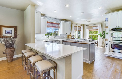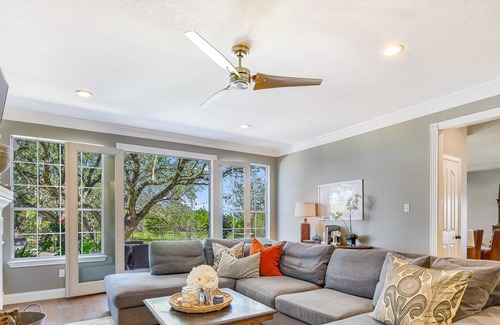 The Above Preserve is the perfect family and group getaway. Property is set in a secluded neighborhood that backs up to a nature preserve. This beautifully decorated, spacious home offers privacy, lots of amenities and sleeps 14. You will enjoy 3 living areas, 2 dining areas, game room, an office, 6 bedrooms (including a Bunk Room) and a backyard built for entertaining! Double doors open from the living room to the outdoor area where you can take a swim, enjoy a game of pool basketball or just relax in the hot tub against the backdrop of the nature preserve. Enjoy your favorite movie on the outdoor TV, play a game of washers or grill up some burgers. Afterwards, enjoy the view or hop on to the trail right out the backdoor. This property is regularly set for 13 guests, but, with homeowner approval, can host as many as 14 guests with luxury Frontgate beds which would also be set with ABOVE standard luxury linens. Additional fees may apply. All guests must be pre-approved to rent this estate. A full guest list will be required. 180+ Plus day minimum.