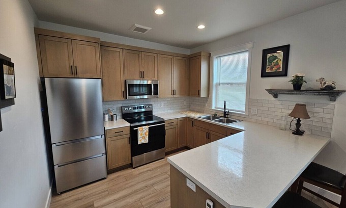 Enjoy a comfy couch and queen bed, a smart TV with any app you need, a fully stocked kitchen, a stackable washer/dryer, and a perfect view of last few holes and the manmade lake that goes with them. All hosted by professionals with 10+ years experience, making for an easy stay