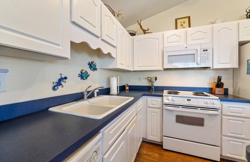 Guests will find the condo very clean and well furnished with a breakfast bar, art décor from the local art community and a master bedroom with a large dresser, spacious master bath featuring double sinks and a tub/shower.