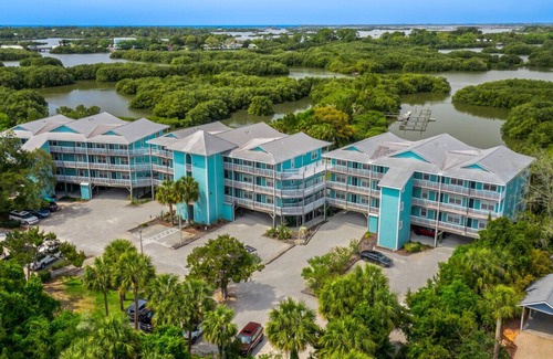 “Your” Natures Landing Condo is the perfect vacation location with an elevator, heated pool, hot tub, grills, picnic tables, fire pit, kayak launching deck, fish cleaning station, and pier for fishing right on the property . Picture yourself sitting on your condo deck overlooking the beautiful marsh and water as you relax, read or bird watch – sighting spoonbills, pelicans, herons and osprey.