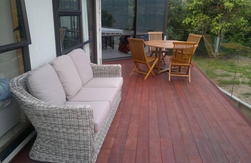 Large very private deck and gardens running right on to the beach.