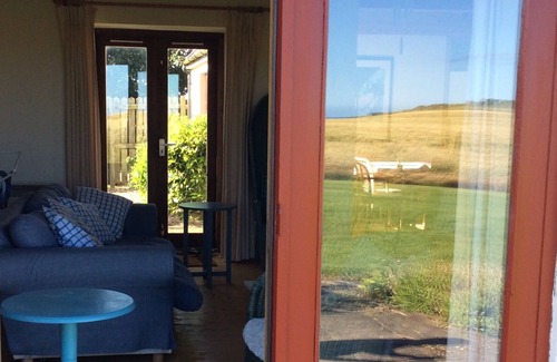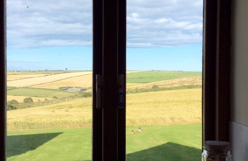 The house has a large double height, sun-filled open living/dining area with wooden floors and rugs and views of the countryside from all sides. Doors open onto the south-facing, sea view patio at the front and a courtyard garden at the rear with table and chairs for outside dining. The house is heated with wifi enabled electric radiators. A large Clearview wood-burning stove makes it warm and cosy even in the winter. The kitchen is very well equipped with everything you need to prepare and cook meals. There is a washing machine, dishwasher, microwave, a fridge and fridge-freezer. To the front of the house, facing south to the sea, is an open garden giving onto the fields, while a sheltered courtyard at the rear catches the late afternoon sun. On a clear night you can see beautiful starry skies. From the garden are far reaching views all around giving a sense of space. The house is a family home, so there are plenty of books, guide books, puzzles and a few games.