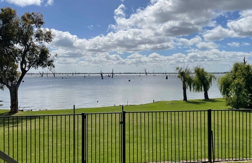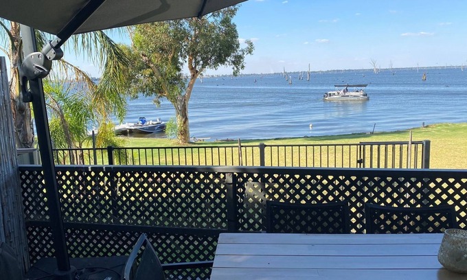 180 degree panoramic views of Lake Mulwala from your balcony and right next door, Fenwick Place boat ramp. Ski straight from your back door with ample parking for cars, boats and trailers. you will even have your own private jetty to enjoy.