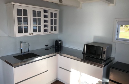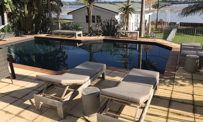 Absolute waterfrontage with incredible as-close-as-you-can-get ever-changing views of the sea and coastal wildlife - offering serenity, gorgeous sunrises and stunning sunsets and very private. Whether you're visiting Auckland on business, vacation or an Aucklander having a staycation or romantic getaway you won't find a better location. The decor is very Hamptons and oh-so-cosy for winter with full airconditioning, beautiful kitchenette, dining area, relaxing lounge and huge bedroom.