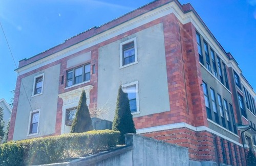 The neighborhood is being revamped with brand new buildings being built. As well as the addition of new restaurants, cafe's, and bistro's. The building is an old school converted into new apartments. The property is on a large lot that offers free parking for 2 cars behind the building.