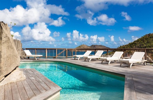 Stairs will lead you on the terrace with deckchairs around the heated swimming pool in a tropical environment. Enjoy the unique and amazing view over the Bonhomme island, Fourchue, Saint Martin and Anguilla islands… and the blue ocean.
