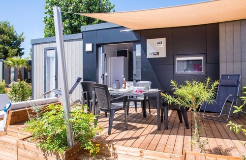 Escape to the coastal town of Vendres and indulge in the ultimate vacation experience at our cosy 2-bedroom mobile home. Boasting a serene location surrounded by magnificent pine trees, our mobile home promises you an oasis of tranquillity. Take a dip in the outdoor pool, engage in thrilling sports fields, and enjoy exciting summer activities on-site. After a day of adventure, unwind on your private terrace while you savour delicious food prepared on your private plancha.