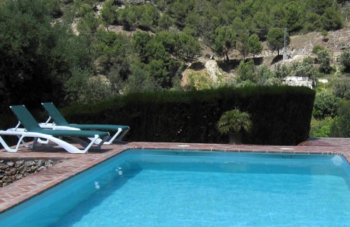 Rustic, private, and rural. This is the essence of this wonderful location. The valley hides at a 10 minute drive from Frigiliana, an enjoyable trip through the mountains. The access has some pronounced curves but doesn't give any problems as the track is fully surfaced with concrete. The cortijo is set on generous grounds and has several sitting corners with flowers and trees. There is an attractive barbecue area and shady porch with patio furniture. The private pool (7m x 4m long and 1.7m - 1.0m deep) comes with sun loungers and is on a higher level giving panoramic views over the valley and also to the hamlet El Acebuchal (1 km), a tiny village with an interesting history. Its inhabitants were forced to abandon the hamlet in 1949 by the Franco regime. El Acebuchal remained unoccupied and fell into ruin until 1998 when a descendant of one of the original villagers bought a house there. He encouraged others to help renovate the 32 homes, town hall, chapel, bar, and streets that make up El Acebuchal. The works have been carried out with great care and attention to details, to return the village to its former glory. There are no shops here but there is a bar restaurant that serves up local dishes such as game, wild boar, and goat. In the whitewashed village of Frigiliana, well worth a visit, you will find a wide selection of shops, tapa bars, and restaurants. If you can tear yourself away from this idyllic spot, then you may also visit Nerja (9 km) where you can enjoy its beautiful beaches and take a dive in the Mediterranean.