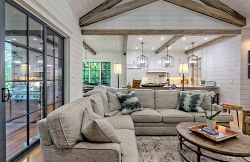 The epitome of lakeside rentals, this home is spacious, casually elegant and fantastically appointed to enjoy all that lake life embodies. Featuring an open floor plan gourmet kitchen, stone fireplace, screened porch overlooking the water, lower level terrace, fire pit, and a boat house with boat slip, eating area, & sun deck. The house has tankless /instant hot water, heated tile floors, a gas generator, workout room, and sauna. This house has it all and is ideal for the most discerning of travelers.
