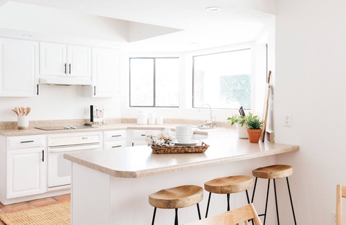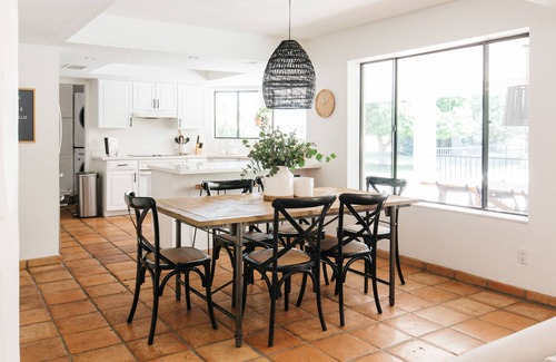 Welcome to the Greenfield. Freshly remodeled and designed home by Lexi Grace Design. This Southwest Modern one-story ranch home sits on over an acre of green grass and mature trees in a quiet neighborhood. 5 bedrooms that comfortably sleep 12 on BRAND NEW Tuft and Needle Mattresses, beautiful bedding and decor. Come enjoy beautiful AZ sunsets by the pool, cuddled up next to the fireplace, or in the Spa at night. This home was thoughtfully designed so that your stay is an amazing experience.