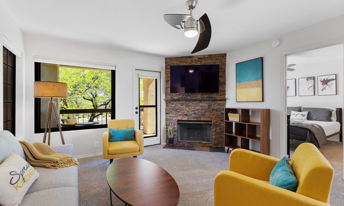 Would you love to walk out your door to walk around the Fountain or Hike? What about cute shops and great dining. You found it! Remodeled Kitchen. Stainless, quartz, modern cabinetry and a wine fridge instead of a dishwasher. All New Mid Century furnishings. Enjoy daily activities at the Heated Pool/Spa just steps away, or simply relax and take in the VIEWS. Condo is upstairs where all the views are! Double balcony with views of The Fountain and of 4 Peaks Mountain range. Washer/Dryer inside condo. Great Views! Don't hesitate to contact me for further information. Anna Collins-Christie, owner/agent. HomeSmart Lifestyles Fountain Hills