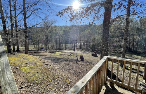 Enjoy the peaceful setting of this location. Walk across the road and enjoy fishing or swimming in Greers Ferry Lake, one of the cleanest lakes in the United States. There is a large deck to enjoy the views of the scenery. This property is a place to retreat and enjoy some quiet down time. There is limited cell phone service in this area. There is no cable tv but there are some dvds.