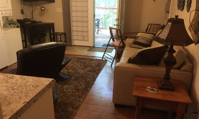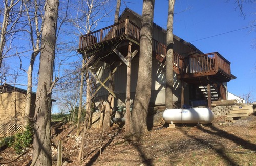 Enchanting escape In the trees! Upstairs 1 bdrm apartment that overlooks Barren River Lake. This quaint getaway has a rear deck, built literally in the trees! The bedroom also features a balcony overlooking the Kentucky landscape. Enjoy a short walk down to the lake, or spend your time relaxing and grilling on the deck. The lake has lots to