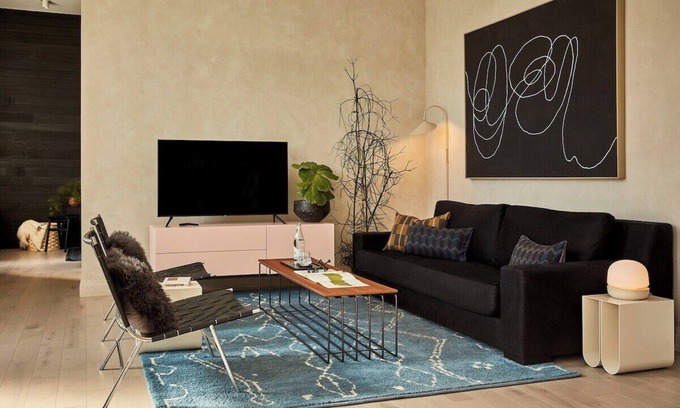 Flooded with natural light and plenty of room to move around, our Accessible Suite has a generous living and dining area with a full kitchen outfitted with everything you need. This suite also has vast, thirteen- foot ceilings throughout and is outfitted with a King bedroom and private en-suite bathroom featuring a rain shower and Aesop bath amenities.