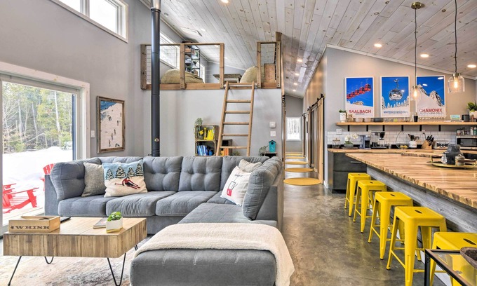 Transport yourself to a stunning snow globe when you stay at this Wilmington, New York, vacation rental. This upscale 4-bedroom, 2-bathroom cabin is the ideal place to bring the family when you’re looking for a relaxing outdoor adventure. This Adirondack vacation rental offers luxury amenities perfect for winter, including radiant-heated floors, a barrel sauna, ski storage, and a cozy wood-burning stove to warm up in front of in after a day of skiing at Whiteface Mountain or Mt Pisgah Ski Area.