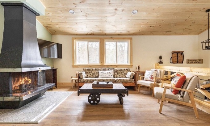 This split level ranch with 1,500 Sq ft on a third of an acre has 2 bed rooms, a bunk room, an office with a day bed, a fully equipped kitchen , deck with propane grill (seasonal), washer/dryer, wood burning fireplace, and a mud room with dedicated space to hang up your skis/snowboard and dry your boots after a long day on the slopes.
