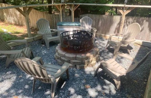 Sit back and relax at our quaint Adirondack home just steps away from the Great Sacandaga Lake. Enjoy a glass of wine or an ice cold beer on the enclosed front porch or under the “Pole-vililon” around the campfire. Even better, take the two minute stroll and enjoy the views of the lake at our common area just down the way! Bring your water toys and get the ultimate lake experience!