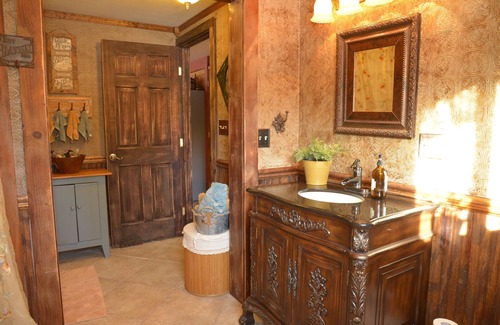 Unique character abounds in this incredible farmhouse nestled in the heart of the Adirondack park. One-of-a-kind decor with barn beams, wood and stone surrounding you (even in the master suite's double walk-in shower and large Jacuzzi tub) will take your breath away the moment you walk through the door. The house was made for entertaining, yet also maintains a warm and cozy feel, perfect for a romantic weekend getaway. Its large, fully appointed kitchen with a separate adjoining great room on one side of the breakfast bar and a dining room on the other side, lets you fill the house with family and laughter, yet is equally as comfortable for an intimate dinner for two. If you are longing for the great outdoors, grab a glass of wine and head out to the large wrap-around porch. Enjoy the spectacular view as you watch the sun set over a mountain so close you can almost touch it. The attached gazebo is a great place for guests to enjoy watching the grill master of your group perform his magic on the huge stainless steel infrared grill Or relax in the Hot Tub Surrounded by the pine and birch forest. You may even spot a deer or two. Handicap accessible, including a second Jacuzzi tub on the first floor as well as a roll-in-shower directly across from the first-floor bedroom. Trout Pond Retreat is the perfect getaway, This Retreat is located for fun for all seasons.Welcome to your home away from home.I look forward to your stay.