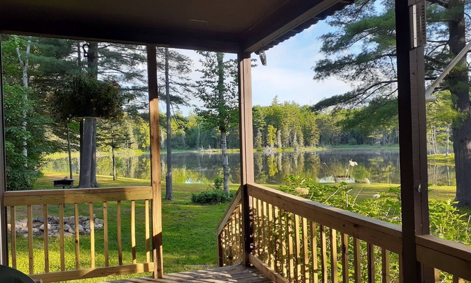 Two Bedroom House that can sleep a family of 5 locate the Adirondacks. Kayaks and cornhole boards included. Sits on lake Winslow Homer. Near by Revolution Rail, white water rafting, tubing, Stone Bridge and Caves. Enjoy all the surrouding area has to offer Gore mt. 15 mins ,skiing . snowboarding , fly fishing , hiking. Bedrooms are one queen room and one with three twins. Charcoal grill (Charcoal not provided) and outdoor fire pit. (Wood sold on site). NO PETS ALLOWED. NO Air Conditioning. There will be a $50 fee for any guest that arrive early or check out late.