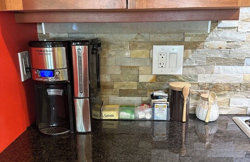 The Admiral's Suite has many amenities. It is 1,500 square feet and can accommodate eight people. Four people in two bedrooms, plus an additional two people on a queen size Murhy bed in a separate office/study. There is also a barbecue, large patio table and an outdoor fireplace.Finally, there is a queen size sleeper sofa in the living room area which can sleep another two people.