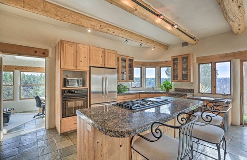 Immerse yourself in the beauty of the Bend area when you stay at this Southwestern gem! Sip morning coffee on one of the 2 patios, relish in the scenic views, then cast your line in the Deschutes River directly from this home. Surrounded by public land with access to hiking and mountain bike trails just outside your door! Secluded on 14 acres and surrounded by public land, this 3-bed, 2.5-bathroom vacation rental also offers easy access to Smith Rock State Park, Mt. Bachelor, and local breweries