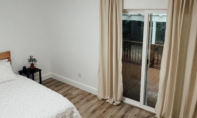 Take it easy at this unique and tranquil getaway. Located on a 3-acre property, this adorable 1-bedroom guest-house has a large living room, full kitchen, and a full bathroom with a bath/shower combo. Fully remodeled this year, it's basically brand new inside and ready to host. Has a partially fenced in backyard and a large covered back deck. Spend the week relaxing, and enjoying the great outdoors on the deck or take a walk on the 3-acres of wooded area. This place is a must see!!!