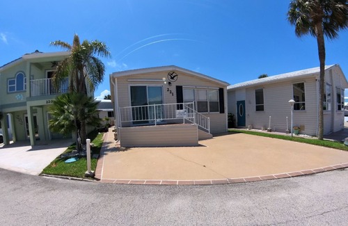 Enjoy this adorable 2 bedroom 2 bath beach house located in Nettles Island! This home has a fully equipped kitchen, open floor plan for dining living and kitchen area. Master bedroom has king size bed, 2nd bedroom has a queen size futon and TV. Bring your bathing suits and beach chairs and enjoy paradise! On-Site Amenities include: Scenic Marina with boat ramp. Two heated pools, two hot tubs, kiddie pool, Bocce Ball, Lighted Tennis, Shuffleboard, Fitness center, Pickle-ball, Mini Golf, fishing and planned activities. Handicapped Pool lift at Recreation Hall and Handicapped beach chairs available. Apply your sunscreen, and get ready to bask in Florida's sunny weather. A short walk across A1A where you'll enjoy exclusive access to Nettles Island private beach.