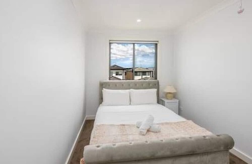 Welcome to your home away from home, for family, friends or business. 4-Bedroom Retreat: Discover the perfect blend of comfort and style in this 4-bedroom, 3-bathroom haven. Walking Distance to Edmondson Park Train Station & Ed Square: A stone's throw away to Ed Square and train station, a bustling hub of shopping, dining, entertainment and transport. Comfortable Bedrooms: Indulge in a restful night's sleep in the bedrooms, each thoughtfully decorated to create a tranquil atmosphere. The space Perfect for Traveling Families: Designed with families in mind, our home offers a warm and inviting atmosphere, ensuring that every member of your group feels right at home. Fully Equipped Kitchen: Prepare home-cooked meals with ease in the fully equipped kitchen. Whether you're whipping up a quick breakfast or hosting a family dinner, the kitchen is ready to accommodate all your culinary adventures. Amenities to Enhance Your Stay: From high-speed Wi-Fi, and Trampoline for kids.