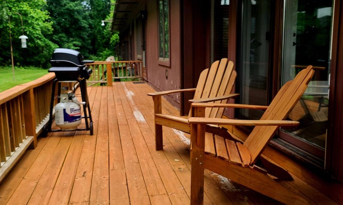This beautiful serene apartment has been recently renovated. It has a fully equipped kitchen, a comfortable living room,a bedroom with a queen bed, a beautiful bathroom with a large walk-in shower, and a relaxing enclosed porch. At this time there is no air conditioning. Guests have access to the heated indoor pool. Outside, guests can use the grill or sit by the firepit, or take a stroll around the property and enjoy the vineyard, fruit trees and wildlife. You may see deer, wild turkeys, rabbits, hawks, Sandhill Cranes, and many other species of birds. Please be aware there are also bugs, bees and poison ivy! This property is a working vineyard and winery. You can expect activity and noise during business hours. We have events, festivals and live music. It can be quite busy at times! Feel free to check our website www.sandhillcranevineyards.com for a complete list of events for the year. You are welcome to spend time enjoying our wine, beer, cider and delicious cafe food. We have lawn seating and a wrap around deck.