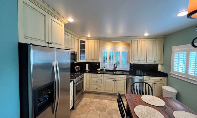 Absolutely adorable downtown Beach Home. Nestled right in the heart of downtown oscoda Westin half a block from gorgeous Oscoda Lake Huron public beach. Stroll down the block to the local beach playground area skate park amphitheater enjoy sun for days Oscoda the beach is renowned for the perfect send, amazing water temperatures and now Oscoda’s newly observation pier. The home is located right across a well, ran coffee shop, ice cream shop, multiple bars, and pubs, restaurant, movie, theater, and only two blocks away from a new bike path that leads all the way to old Orchard Park. This one was recently remodeled and has an Absolutely quaint beach theme field. The kitchen dining room set a 10 features, two fridge Raiders, one in the kitchen one in the garage for your extra storage needs. Beautifully Kraftmaid Cabinets with self closing, drawers, dishwasher microwave, blender, toaster, oven, pots pans, dishes, cups, coffee mugs. There is five bedrooms located in this home. The lower level bedroom is a queen bed. The four upper levels contain one full size bed, room, one, full-size bedroom, one king size bed, room, and one double bunk bed features twin over full. Newly remodeled bathrooms one upstairs one downstairs. The downstairs is a full size bathroom with a tub shower, combo toilet vanity and all linens, the upstairs bathroom is a full bathroom with a shower toilet Bentley and all linens. Besides, this exquisite location, some of the fun features on this house is a second-story back deck that oversees views of Lake Huron, in partial of the Oscoda pier. The top deck features, sectional seating, and a six person gas fire table top bar. The grounds are stunningly landscaped. They feature an outside seating area and actual fire pit bull for your nightly campfires and s’mores. What is so fun about this location is ability to go to the beach and have sun for hours, create memories, and then walk, just literally blocks to local restaurants, dining bars, and other activities. This home will not disappoint newly listed will book fast.