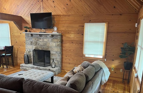 Enjoy a relaxing getaway in a clean, cozy cabin secluded from the hustle and bustle of town, but conveniently located within minutes of Somerset and Lake Cumberland. Recently renovated and full of charm. Perfect spot for a family or a romantic getaway. Nature lovers will enjoy relaxing on the front porch watching birds, deer, and wild turkeys. Children will enjoy the freedom to play both indoors and outdoors either with provided games for entertainment or with the option to run and play outside without worrying about nearby neighbors or traffic. After a long day on Lake Cumberland, kick back and enjoy family time watching Netflix or your app of choice on one of our flatscreen TVs and large sectional sofa in front of the cozy stone fireplace while playing a highly competitive game of Jenga or air hockey. Truly a hidden gem in a beautiful, serene setting.
