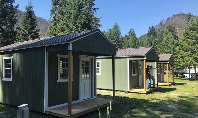 Stay comfortably upriver at this cute and cozy dry cabin. Experience the cool mountain air and the lazy river with wildlife abounding during your stay. The cabin features a delightful queen bed, ensuring a cozy night's sleep. With AC and heating available, guests can stay comfortable no matter the weather. We hope you'll enjoy your stay at our cabins. Centrally located near "The Y' 17 miles from I-90 at Wallace or 21 miles up from I-90 at Kingston. *Note: these are dry cabins (no indoor potty). There are several porta-potties just outside. They do have electricity and are fully furnished just like "a bedroom out in the woods" and include a fridge, microwave, coffee pot, propane BBQ, etc. So, don't have (or want to haul up) an RV, tents, air mattresses, sleeping bags, lanterns, etc. for a great time on the river? Then come and stay at our place! Also, have friends and family wanting to come along as a group? We have space in our private campground for them as well...