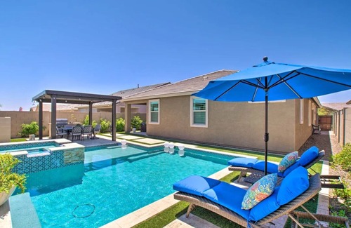 Relaxing backyard with private pool and hot tub! Close to quaint cowboy town, hiking, golfing, and restaurants, including infamous country bars and local bull riding!